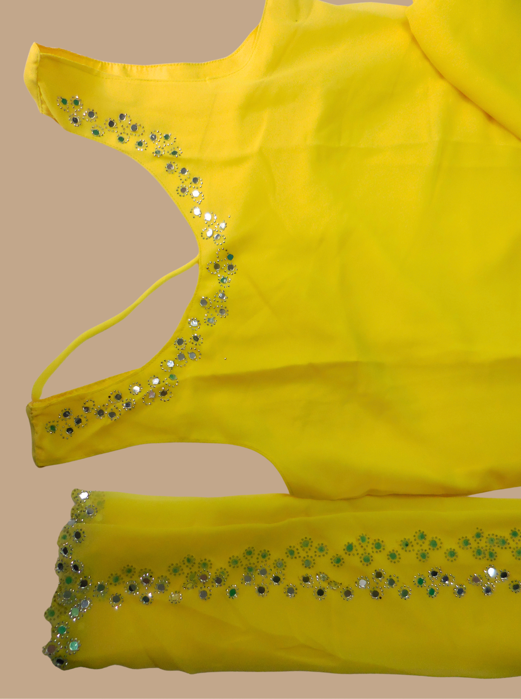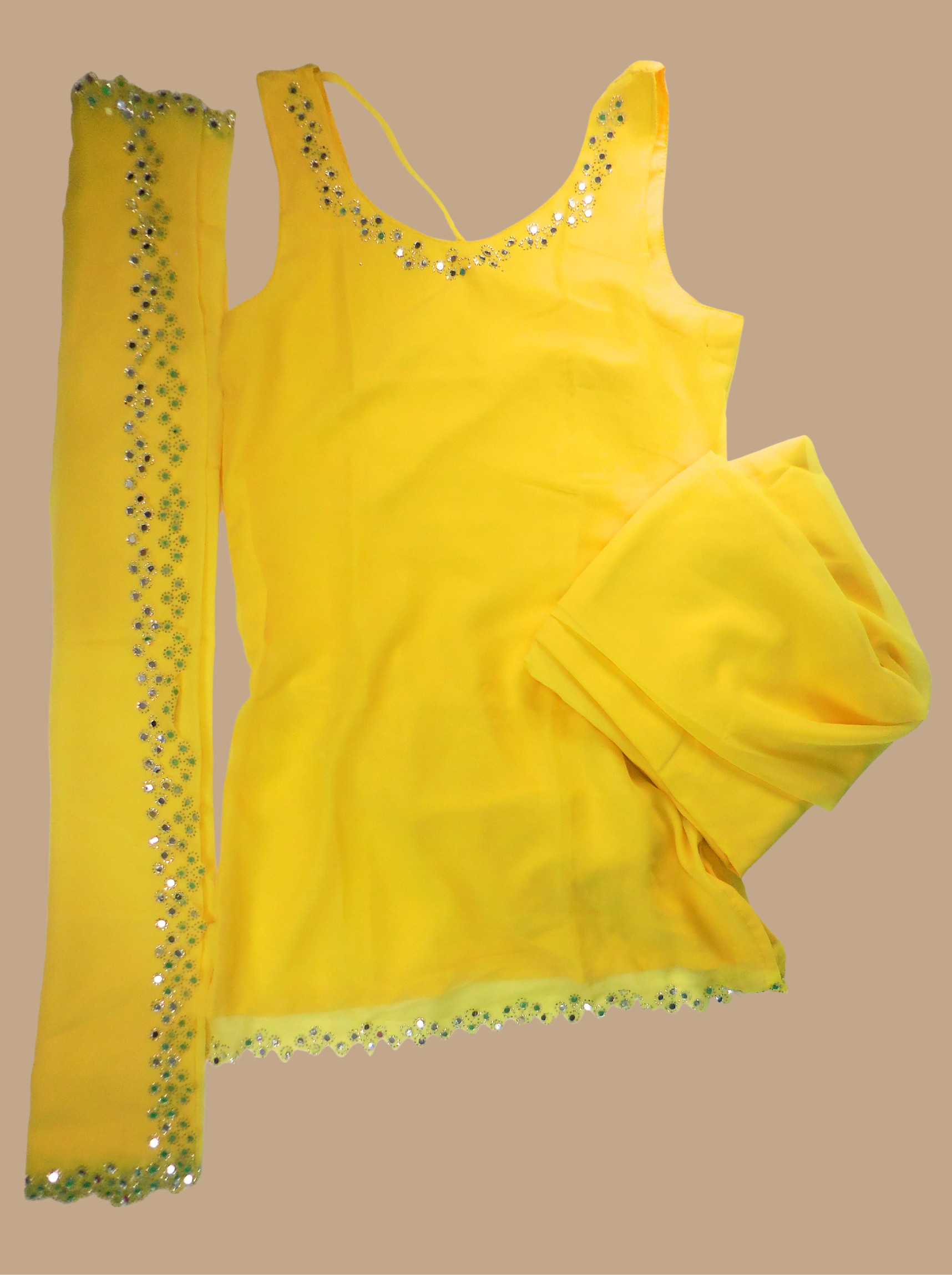 Be the first to review “Designer Yellow Georgette Sharara Set with Mirror Embellishments” Cancel reply