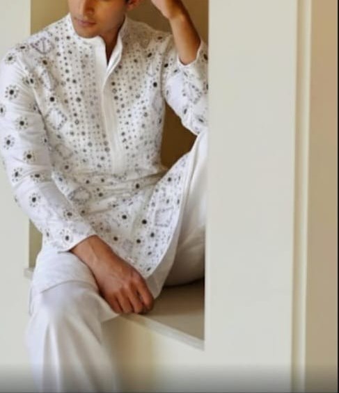 NOOR by BihariThreads is a celebration of refined craftsmanship and timeless elegance. Crafted from a premium silk-blend fabric, this kurta set showcases the delicate artistry of hand-embroidered mirror and thread work, meticulously created by skilled artisans from the heritage craft clusters of Bihar.
