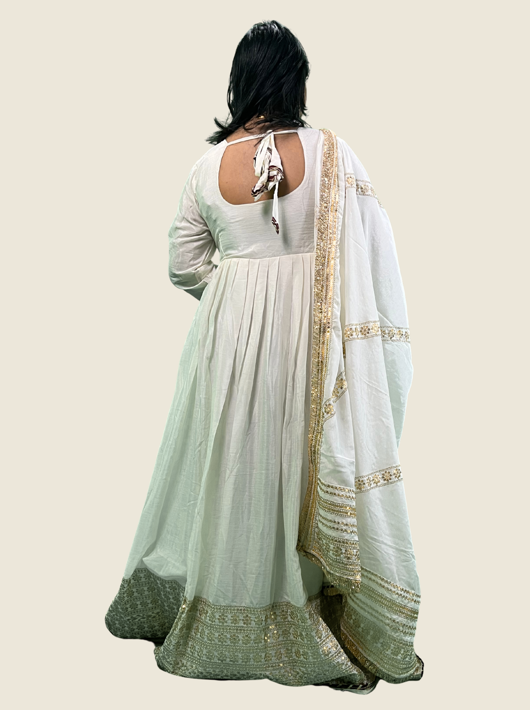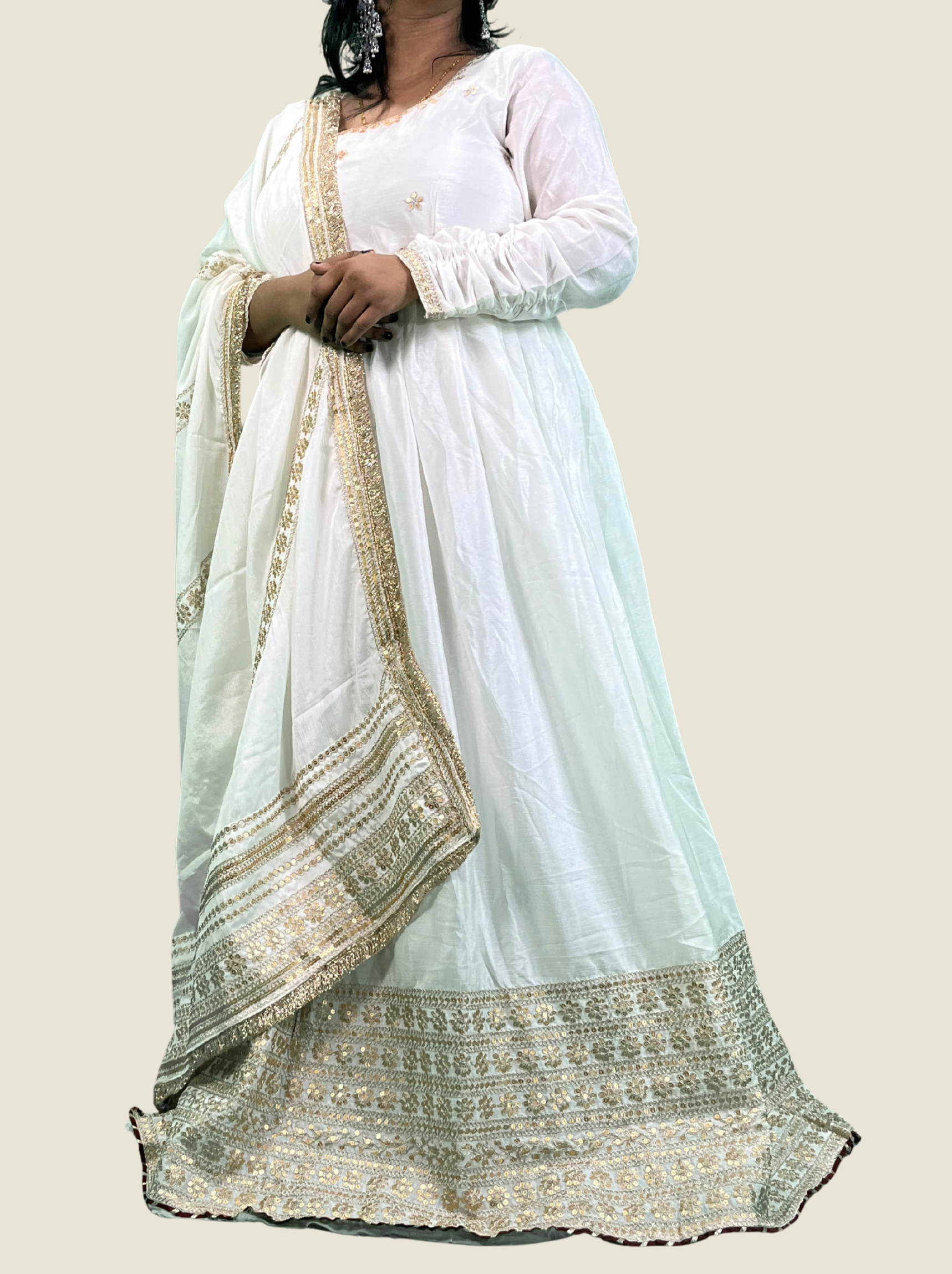 Festive White Anarkali Suit with Zari Sequin Embroidery – 3 Piece Set