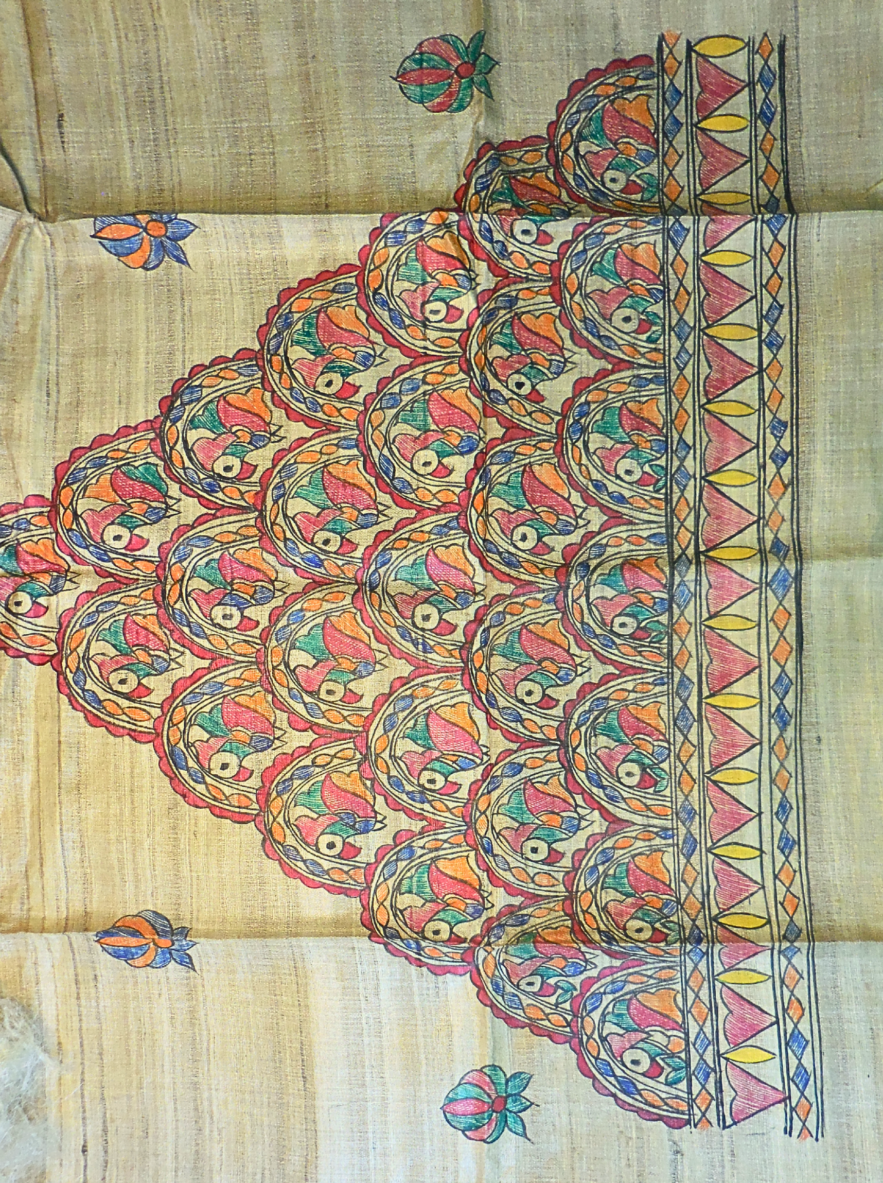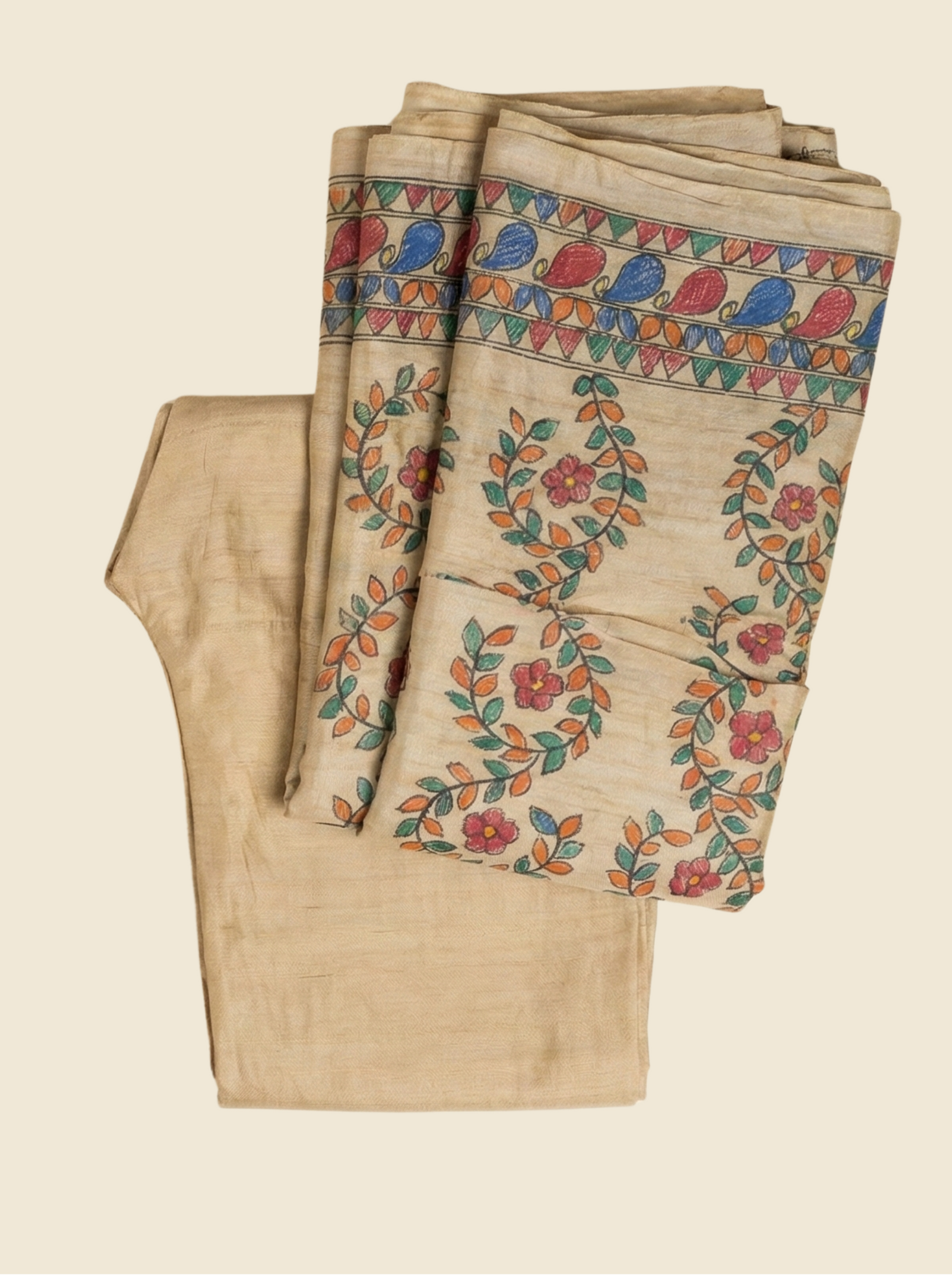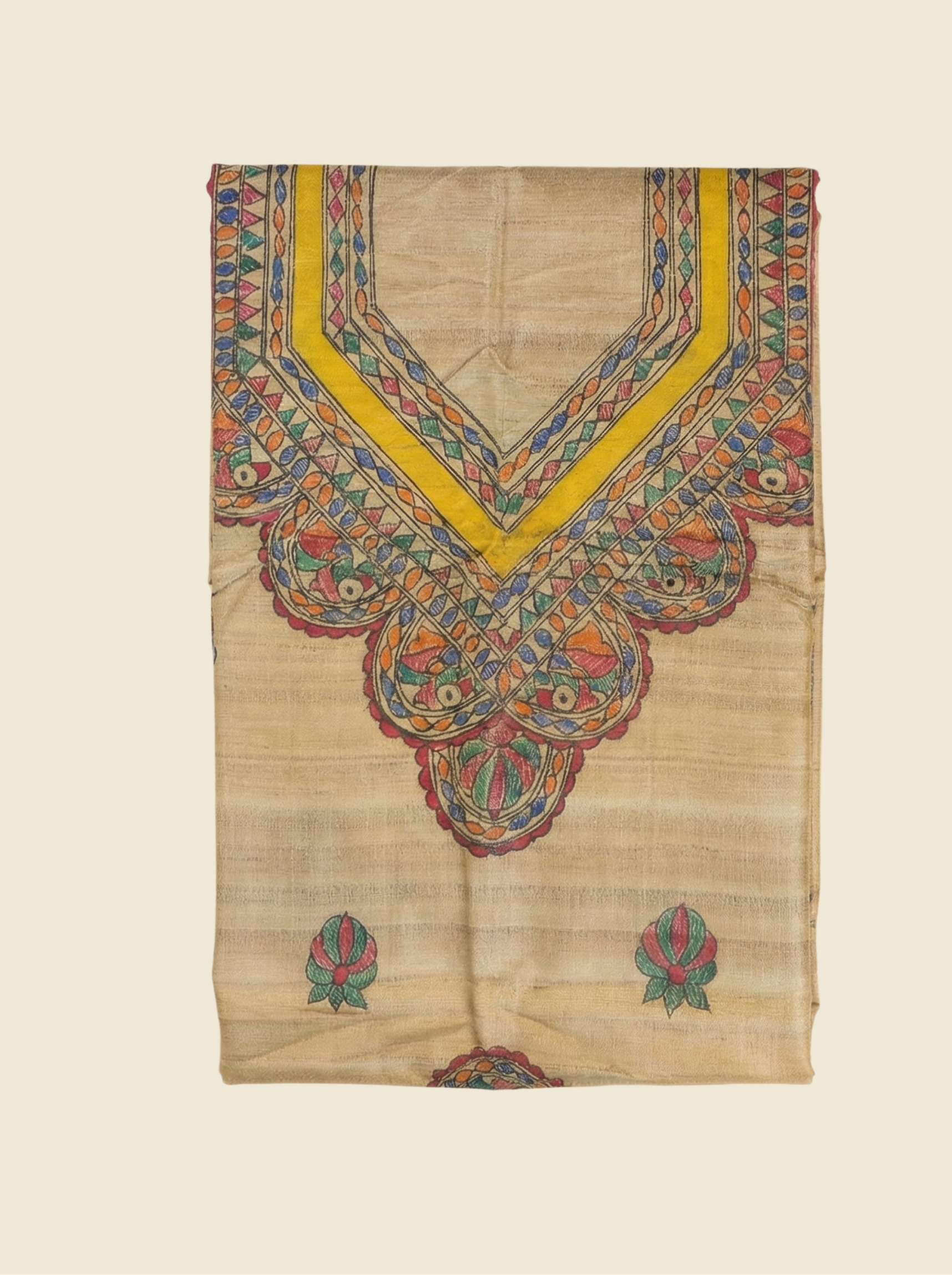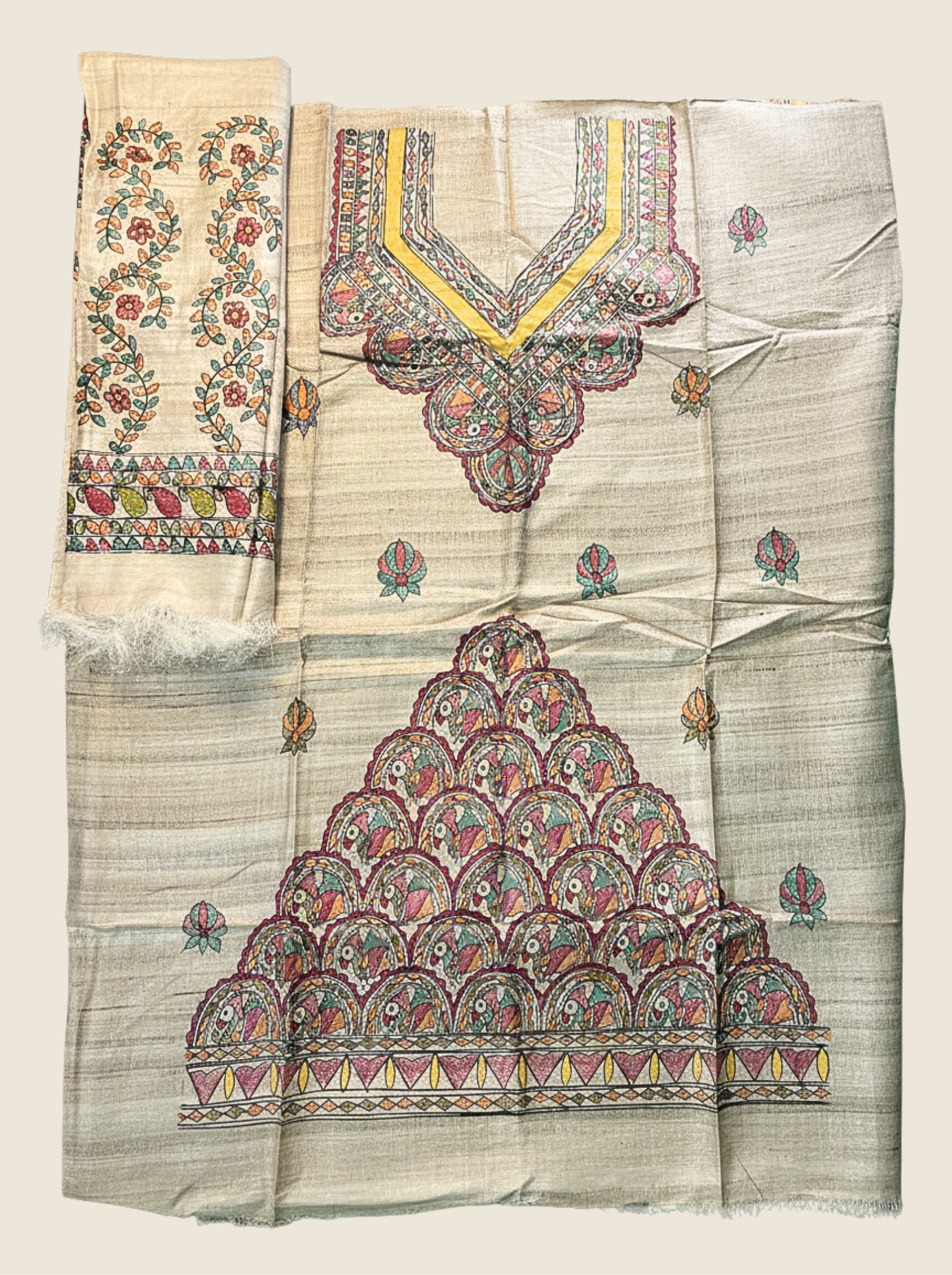 Pure Tussar Silk Hand-Painted Madhubani Suit Material (Unstitched)