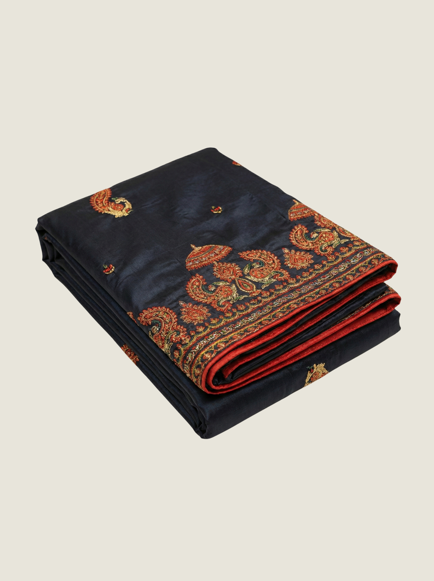 This breathtaking Paisley Pure Mulberry Silk Saree is a timeless expression of luxury and traditional craftsmanship. Crafted from the finest pure mulberry silk, the saree features a deep, elegant black base that beautifully enhances the richness of its woven detailing. The saree is intricately woven with resham (silk threads) and shimmering zari, forming classic paisley motifs that symbolize grace, prosperity, and heritage.
